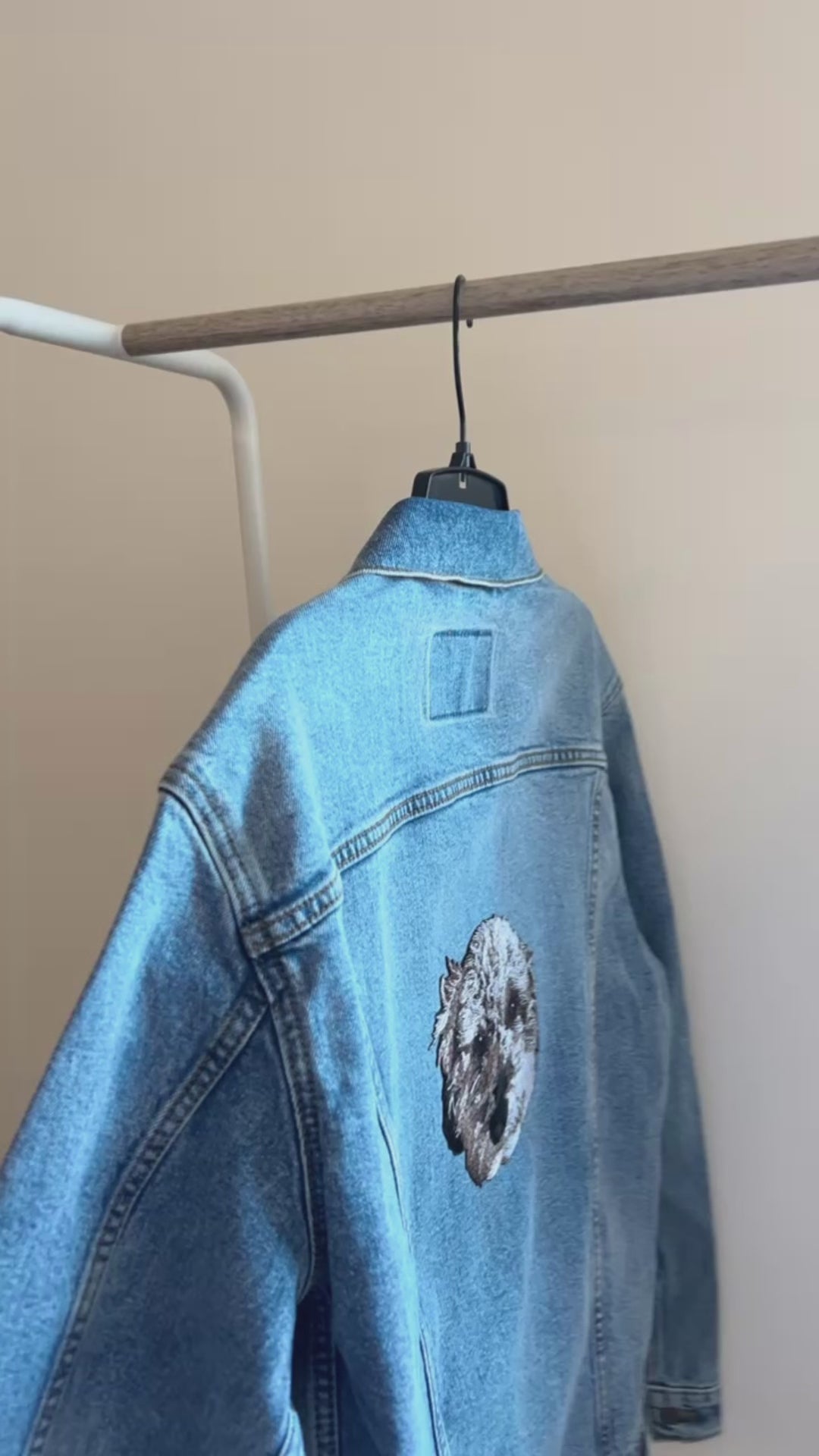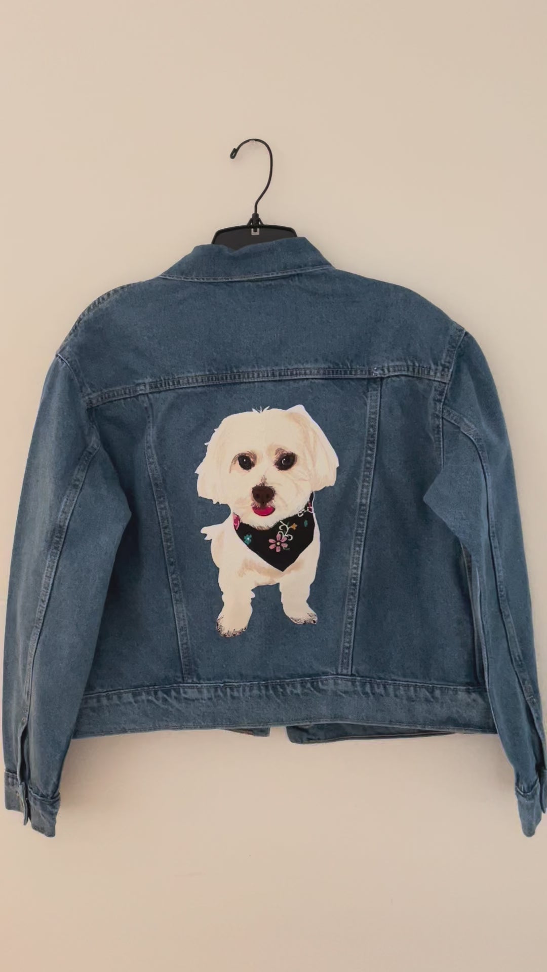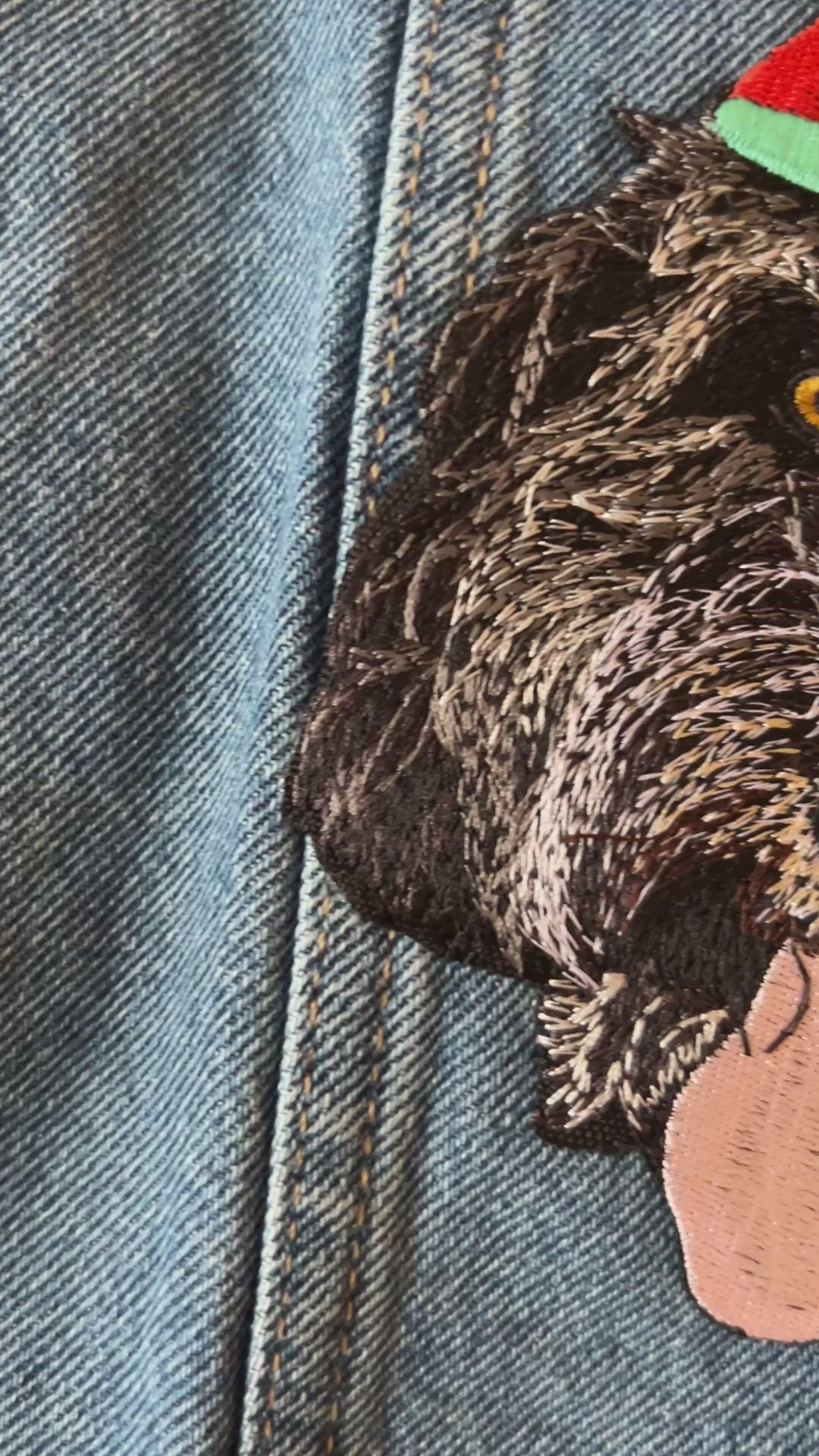 Upload a photo of your pet and we'll create a custom embroidered patch denim jacket just for you. Embroidered patch is placed on the back of the jacket by default. Standard size of patch is _x_ inches.