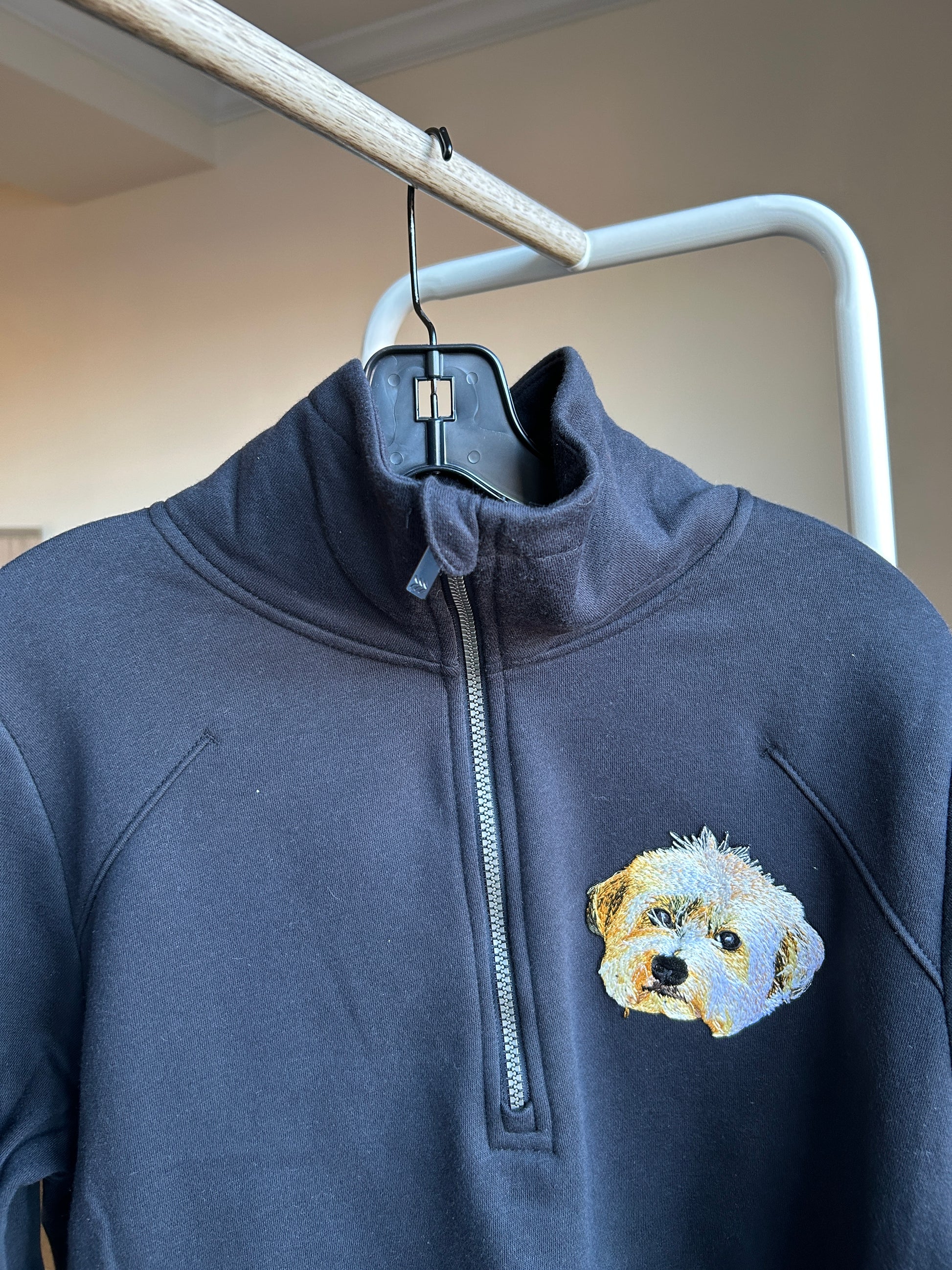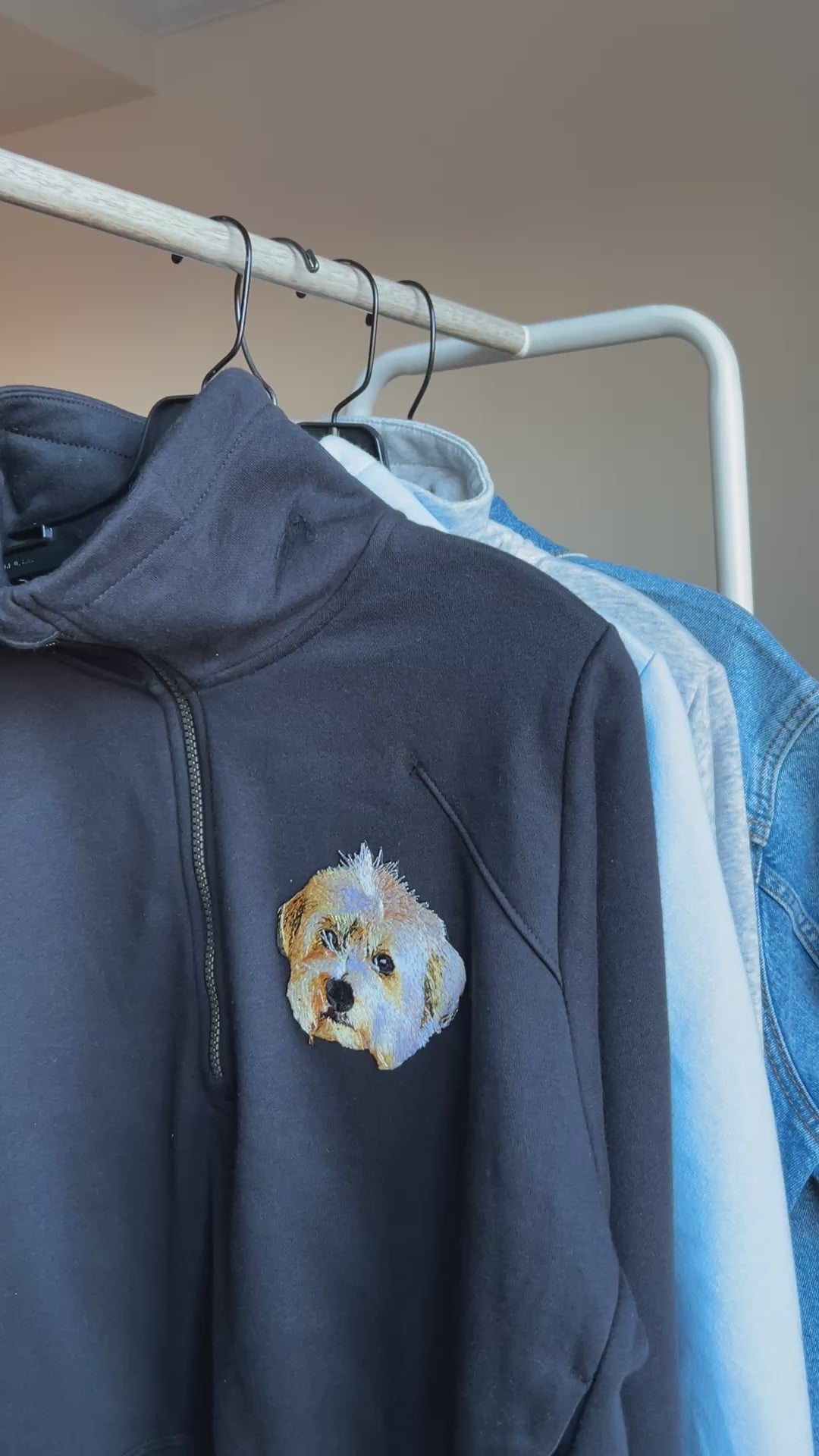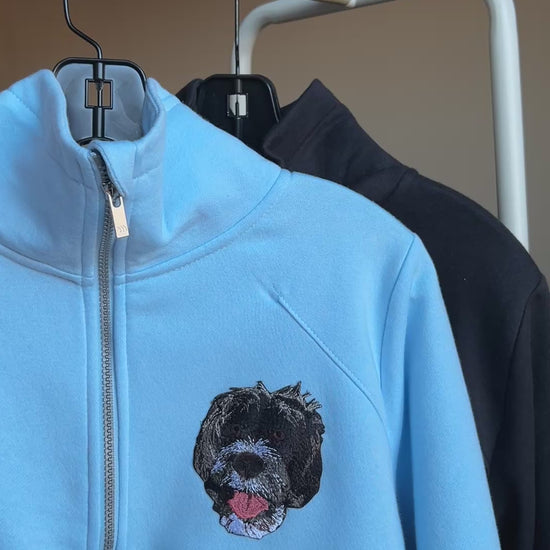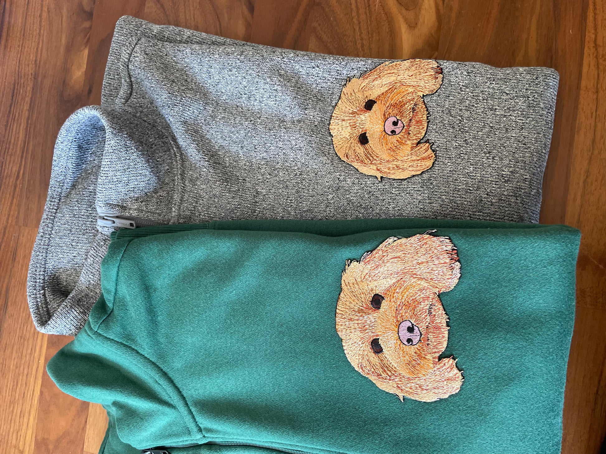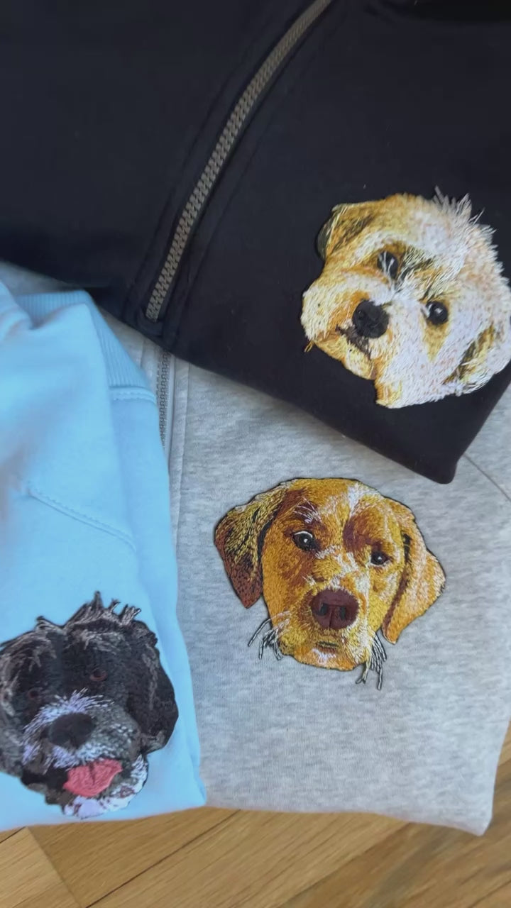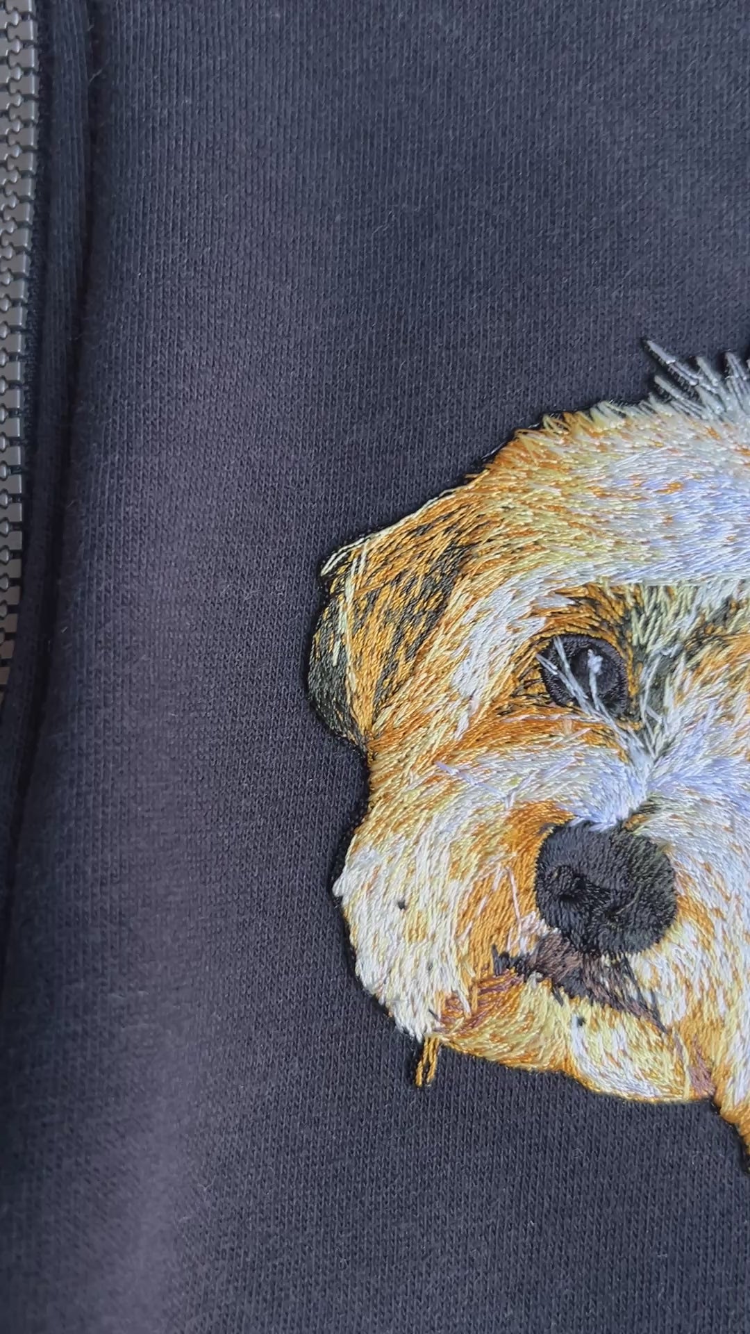 Upload a photo of your pet and we'll create a custom embroidered zipper hoodie just for you. Embroidery is placed on the left chest by default.