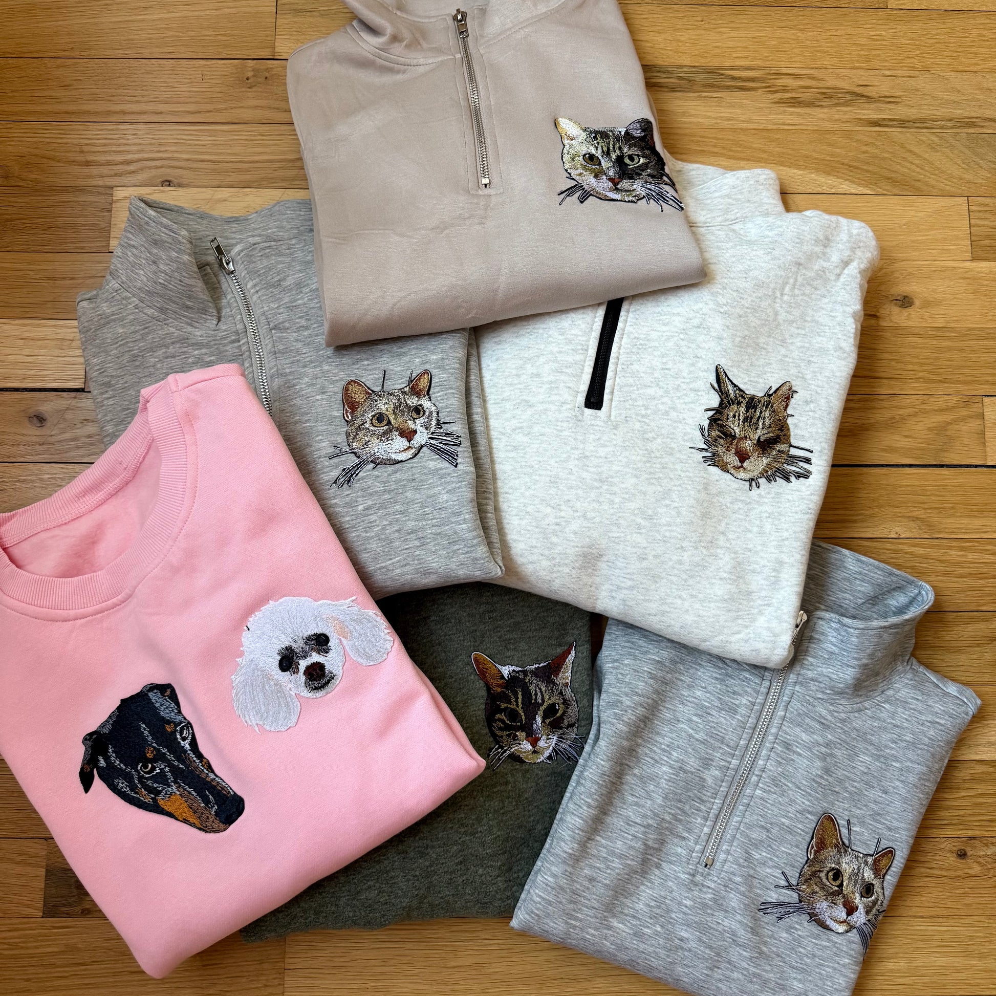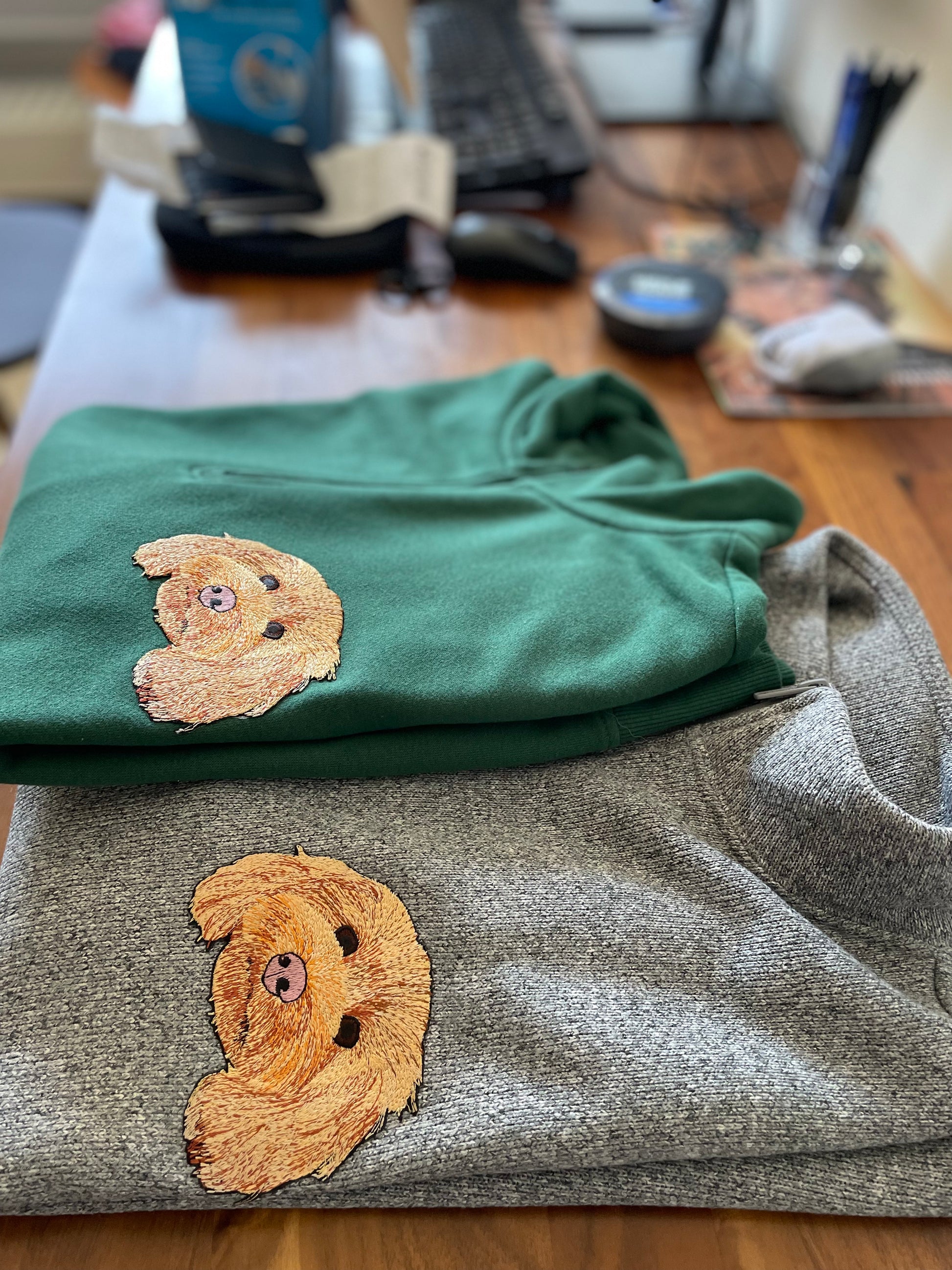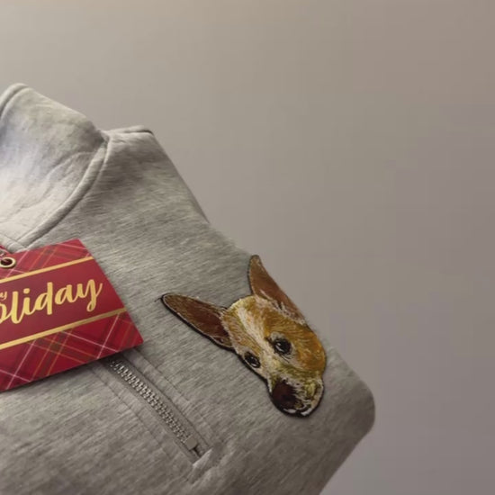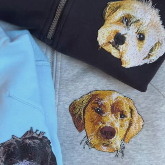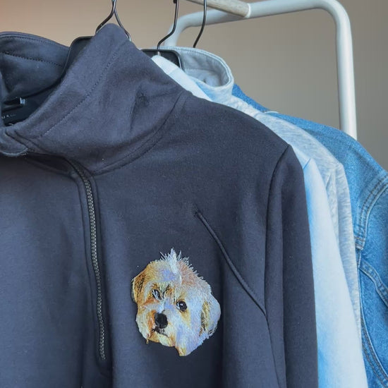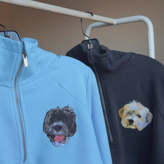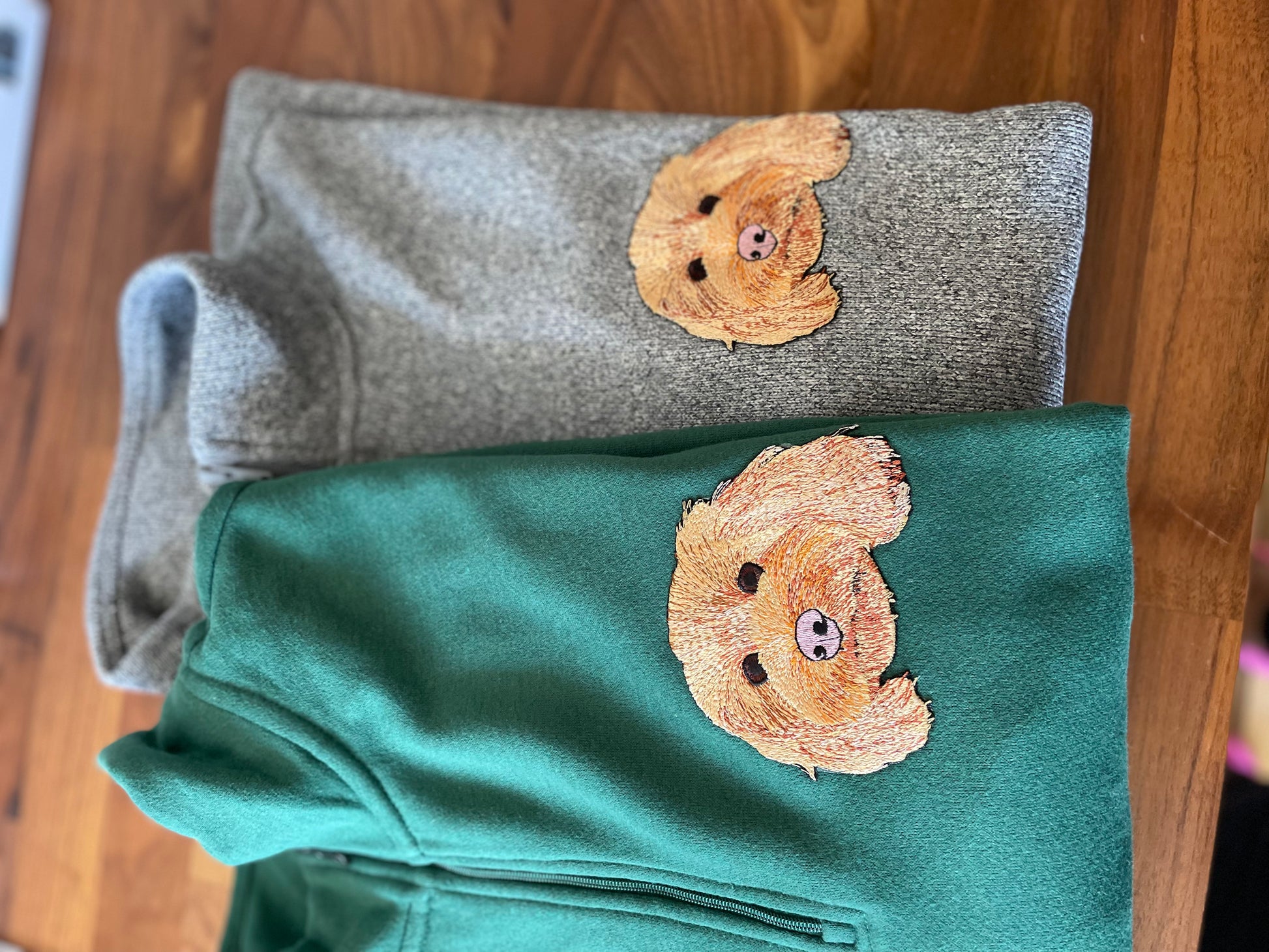 Upload a photo of your pet and we'll create a custom embroidered zipper hoodie just for you. Embroidery is placed on the left chest by default.