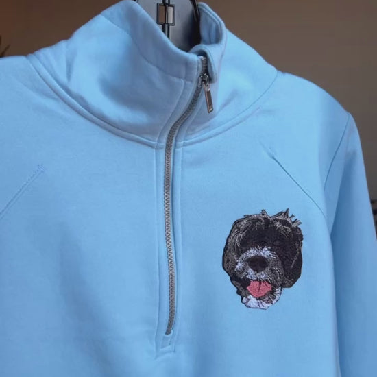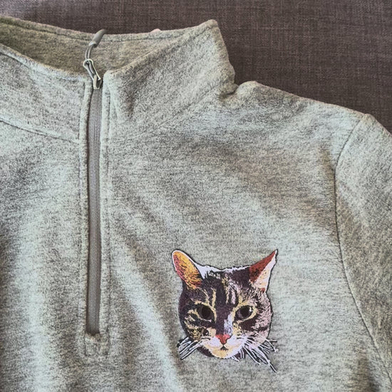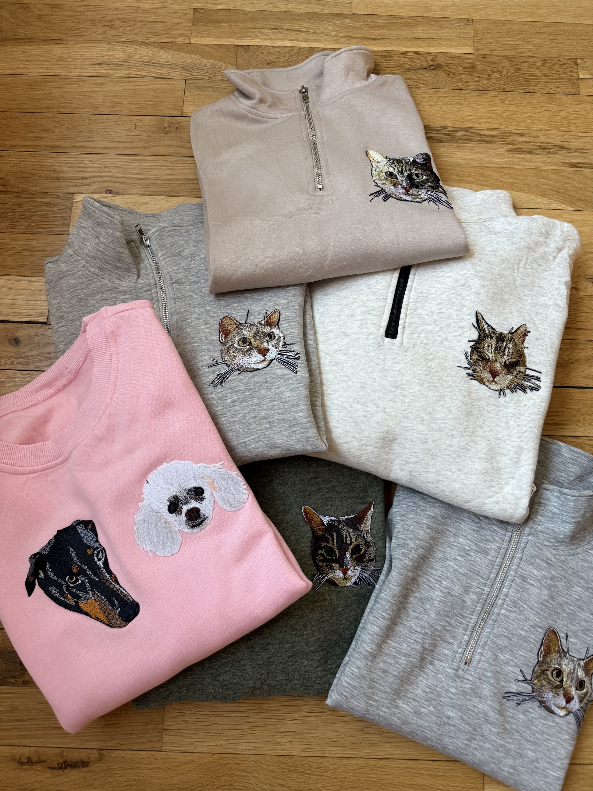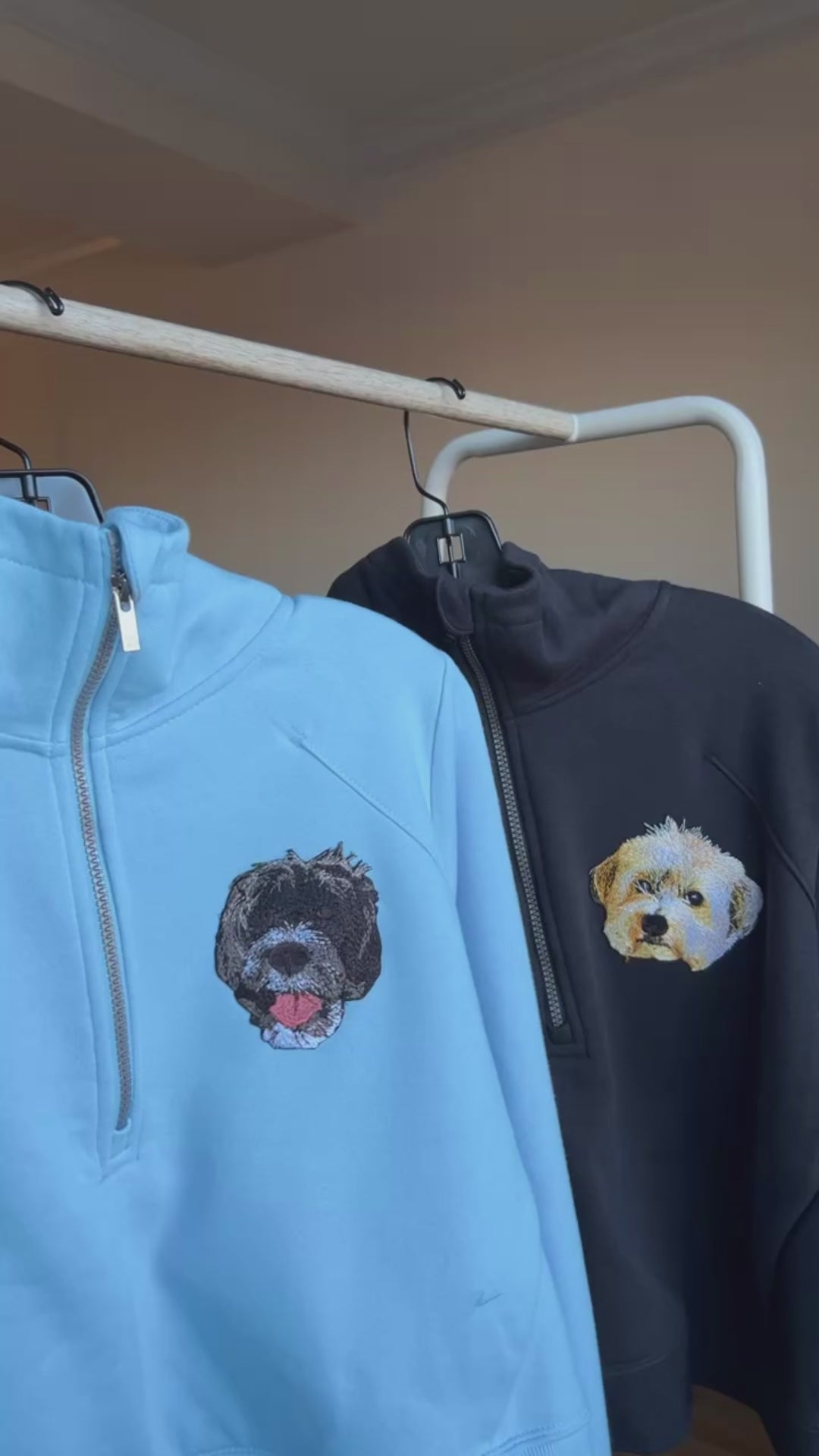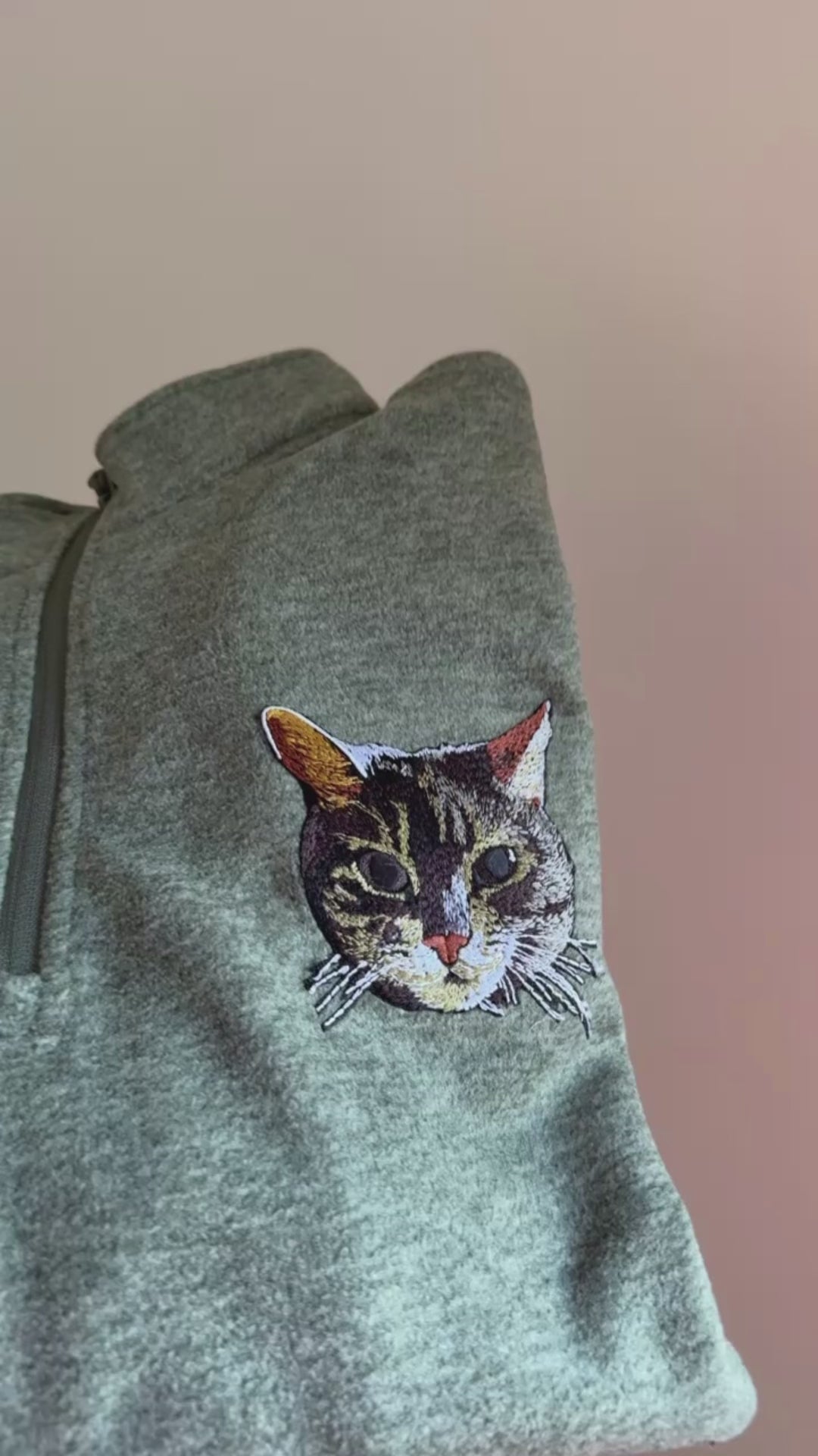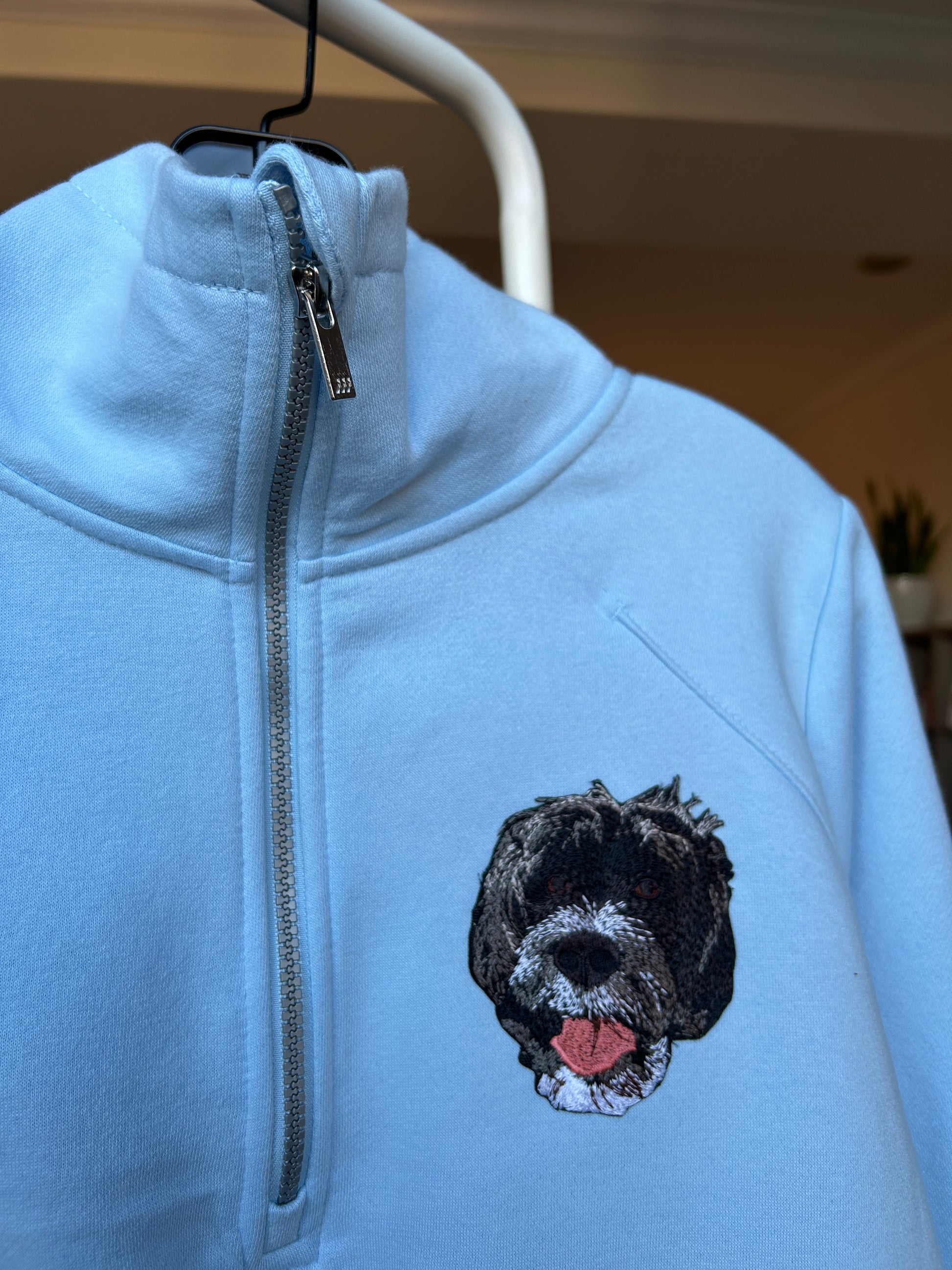Upload a photo of your pet and we'll create a custom embroidered zipper hoodie just for you. Embroidery is placed on the left chest by default.
