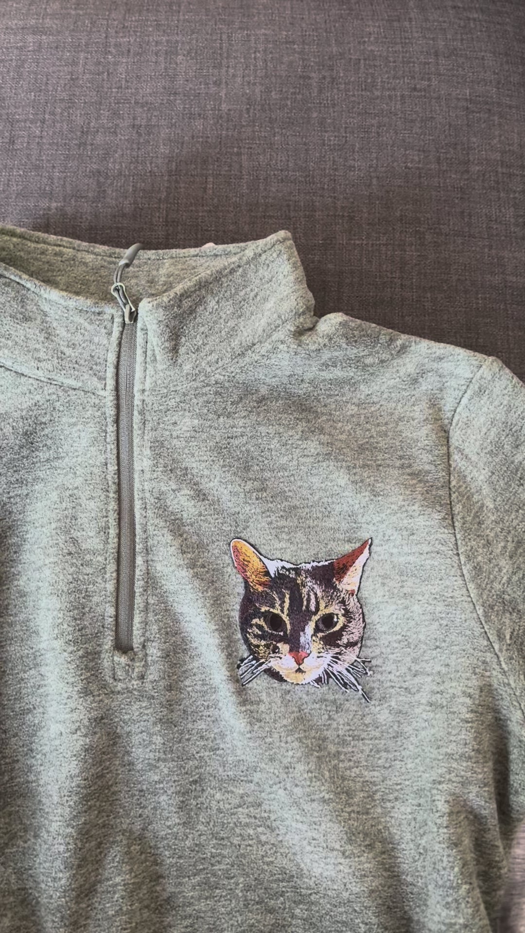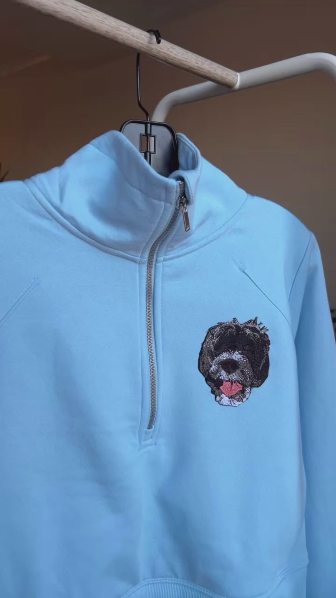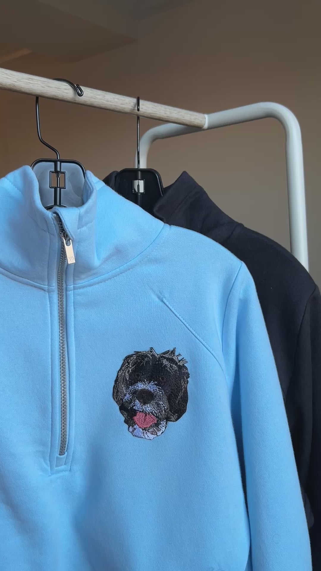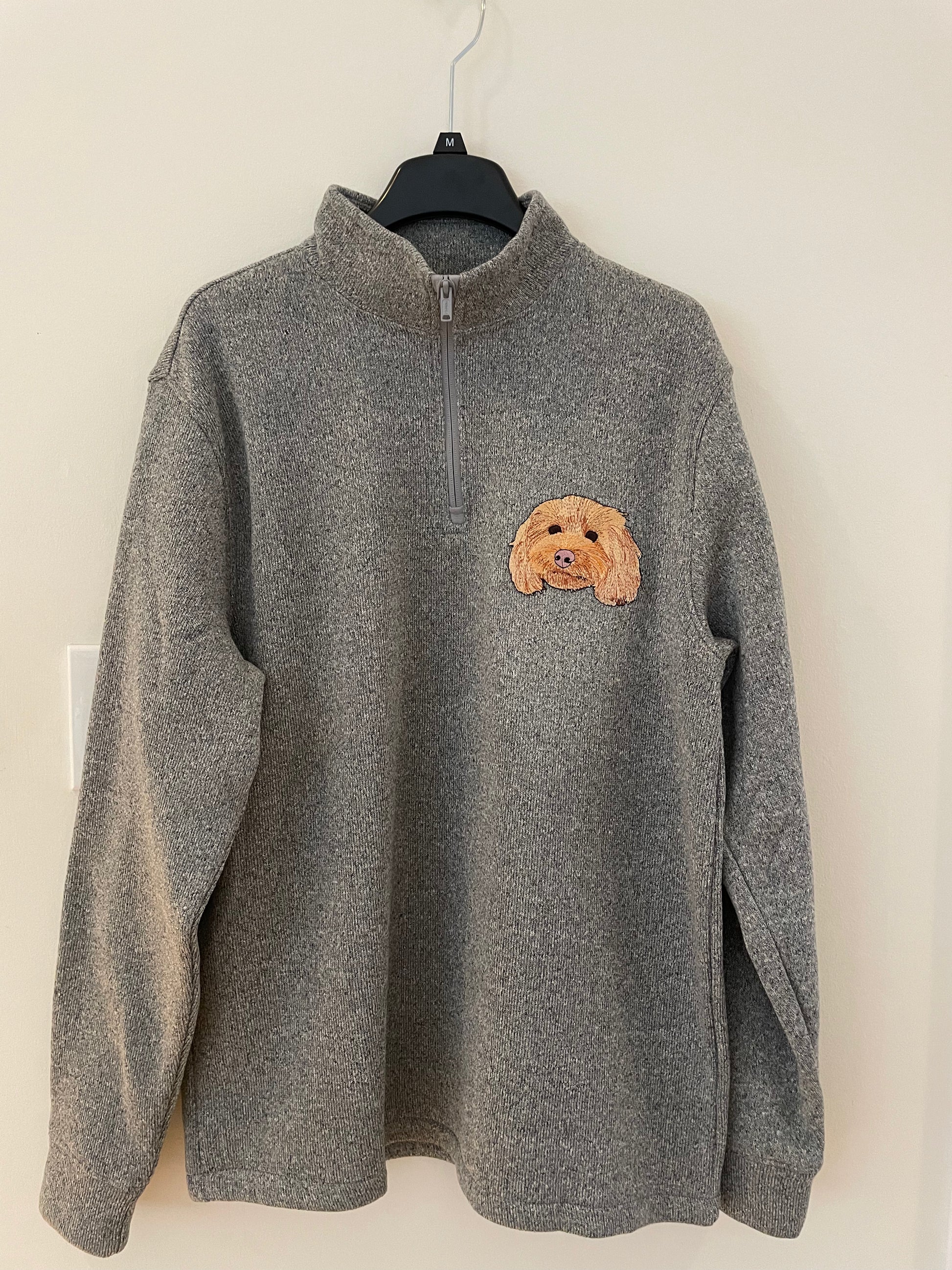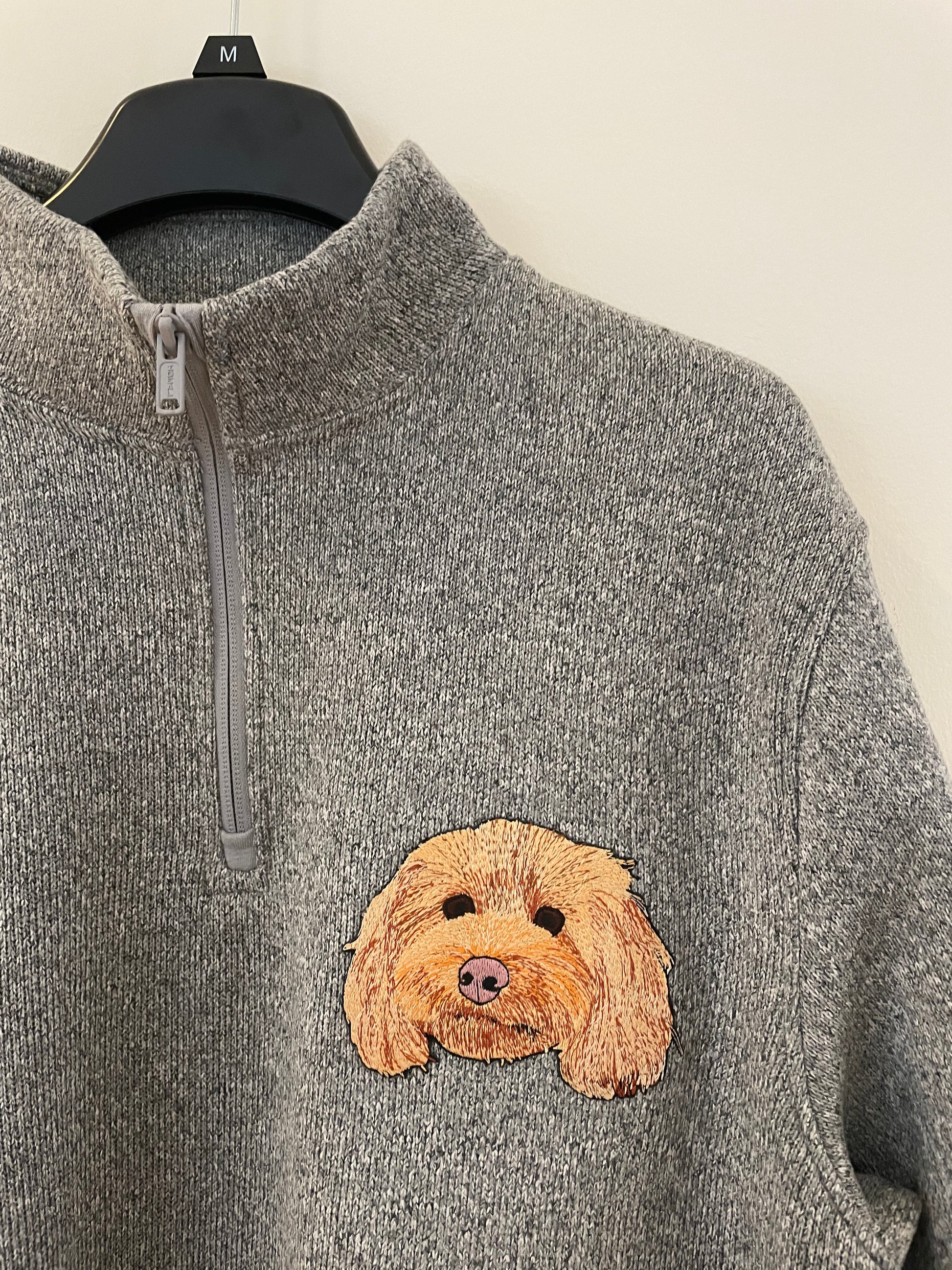Upload a photo of your pet and we'll create a custom embroidered zipper hoodie just for you. Embroidery is placed on the left chest by default.